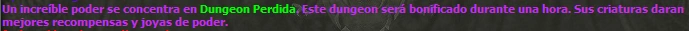 - En consola aparecerá un mensaje diciendo en qué dungeon se encuentra la Zona del Poder, además esta tendrá una duración de 1 hora.